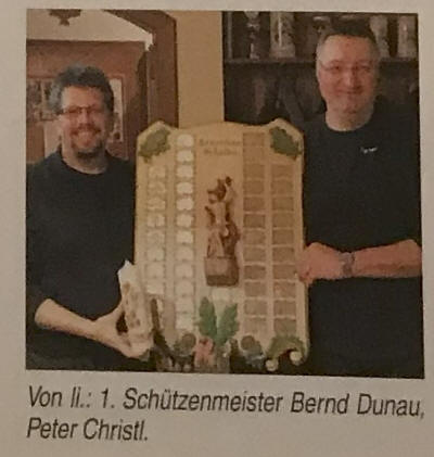 Herbert Müller spendierte zu seinem 70. Geburtstag eine Scheibe. Geschossen wurde auf einen 70-Teiler und die Scheibe gewann Tobias Roitsch mit der Luftpistole.