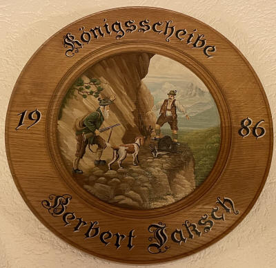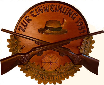 Schützenmeister Franz Binzer spendiert zur Einweihung eine außergewöhnlich schöne Scheibe