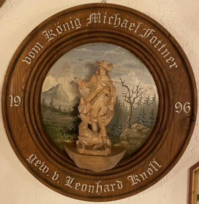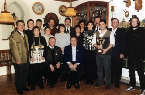 Der Schützenkönig 1996 Michael Fottner spendiert eine Scheibe. Gewonnen wird sie von Leonhard Knoll