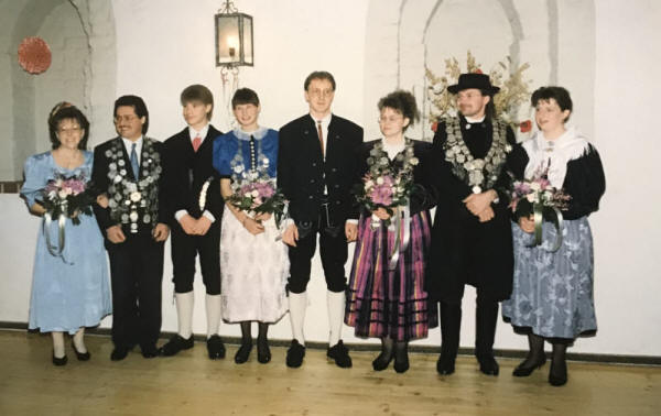 Schützenkönig 1993 wird Christian Scherer mit einem 55 Teiler. Carmen Lohner wird Jungschützenkönigin mit einem 71,8-Teiler