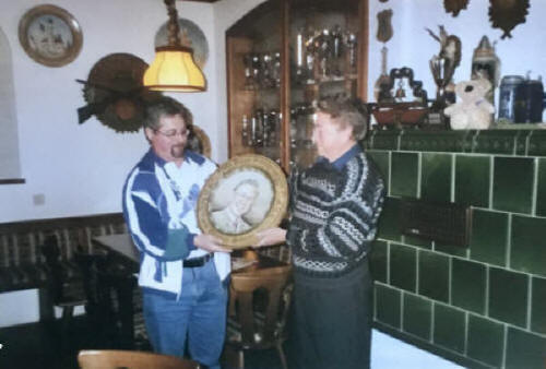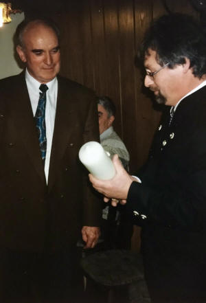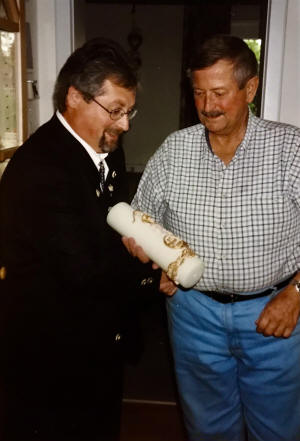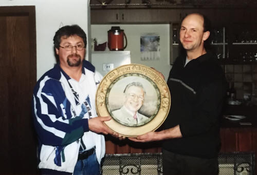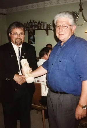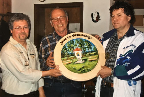 Rupert Peter spendiert zum Andenken an Franz Binzer eine Scheibe. Als erster darf sich Christian Scherer auf dieser Scheibe verewigen.