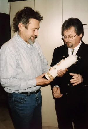 Peter Christl verewigt sich auf der Sebastianischeibe