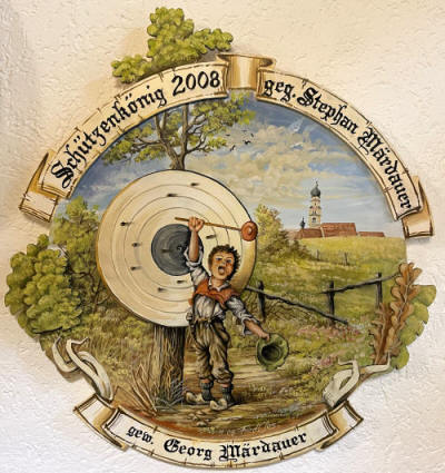 Der Schützenkönig spendiert eine sehr schöne Scheibe, die in der Familie bleibt. Georg Märdauer heist der Gewinner der Scheibe