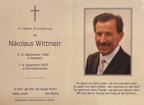 Der 1. Gauschützenmeister Nikolaus Wittmeir verstirbt