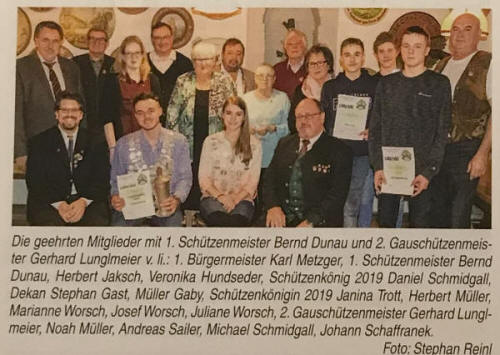 Die Schützenkönige für das Jahr 2019 wurden im Rahmen der Weihnachtsfeier vorgestellt :Daniel Schmidgall und Janina Trott