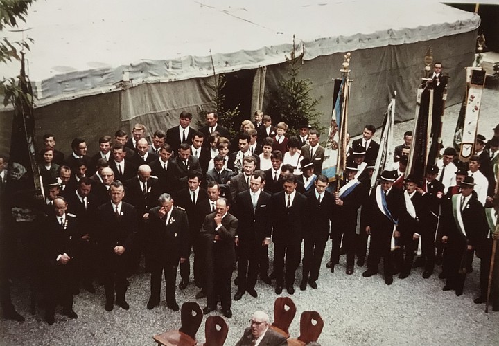 ![]() Fahnenabordnung mit Landrat Bestler und Gauschützenmeister Josef Baudrexl |