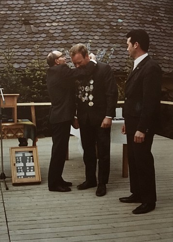 ![]() Gauschützenmeister Baudrexl überreicht die Königskette (rechts Vorgänger J.Schwarz aus Oberbernbach |
