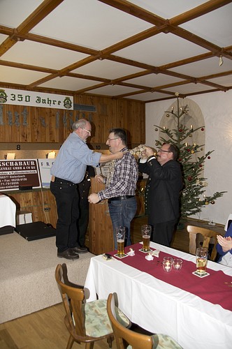 ![]() Der Vorjahreskönig Georg Märdauer übergibt seine Kette an den neuen Schützenkönig ......... |