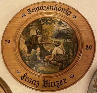 Schützenmeister Franz Binzer spendiert zur Einweihung eine außergewöhnlich schöne Scheibe