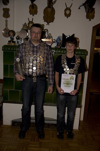 Gruppenbild mit allen, die eine Ehrung erhalten haben und den neuen Schützenköigen.