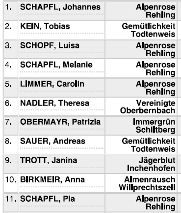 da zwei Teilnehmer vorher absagten, konnten folgende Finalisten nachrücken: