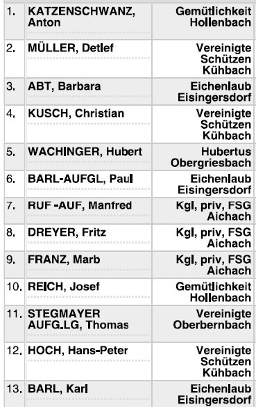 Für das Finale der Aufgelegt-Schützen qualifizierten sich :